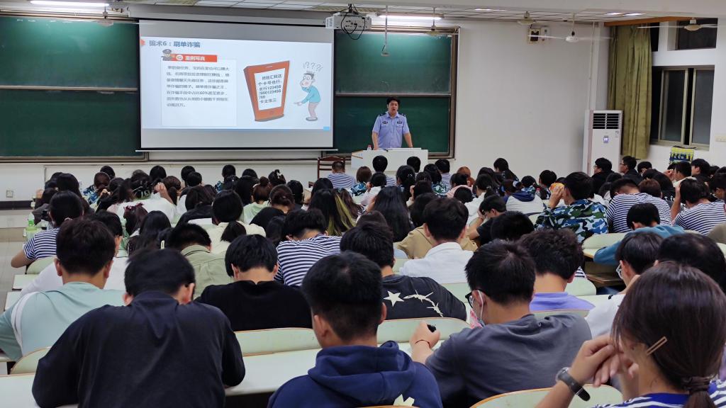 为进一步提高新生的反诈防骗意识和能力,普及防范电信网络诈骗知识。9月22日晚,体育彩票 邀请雨山公安分局反电诈中心王警官在佳山校区教三南103、301教室开展了 “谨防电信诈骗,共筑平安校园”2023级新生防电信诈骗专题讲座,2023级新生辅导员及全体新生参加了此次讲座。