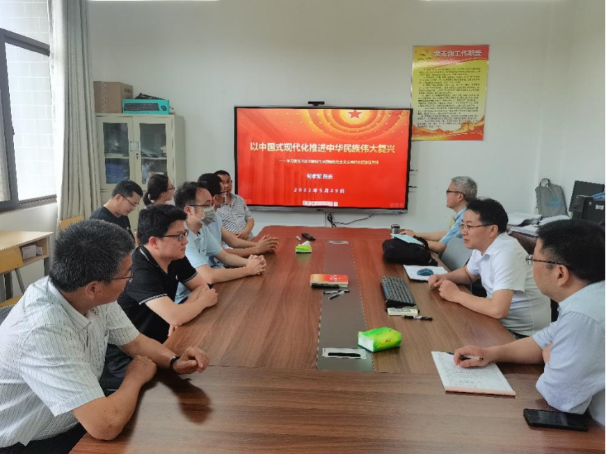 按照学校统一部署要求,上好党课是开展学习贯彻习近平新时代中国特色社会主义思想主题教育的重要举措之一,何孝军结合主题教育学习体会,以《以中国式现代化全面推进中华民族伟大复兴》为题,从“坚持党的领导是中国式现代化的根本保证、中国式现代化必须坚持走中国特色社会主义道路、中国式现代化将中国自身发展与世界发展统一起来”三个方面详细介绍了“以中国式现代化全面推进中华民族伟大复兴”的基本内涵,并鼓励大家不断提高教学和科研水平,为国家培养优秀人才贡献最大的力量。党课结束后,何孝军与支部党员进行了深入交流。