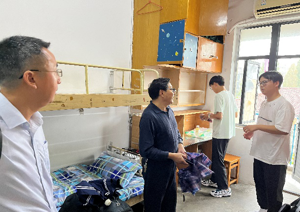 为进一步关心关怀新生,院党委书记李晓东、院长何孝军、院党委副书记冀秀芝、副院长张代林等学院领导带领学工队伍,深入宿舍看望新生,亲切询问省外学生对于马鞍山的气候、饮食是否习惯,关心家庭困难学生有无需要学院提供帮助的地方,并耐心细致地回答学生问题。李晓东一行与新生畅谈大学期间该如何培养一项健康向上的兴趣爱好,积极向上、持之以恒,在四年的大学生活中收获学业、收获友谊、收获成长。