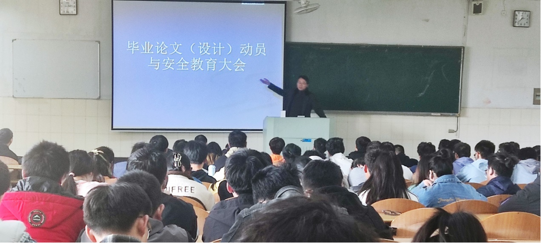 为进一步提升毕业生在开展毕业设计(论文)期间的安全意识和提高毕业设计(论文)质量, 3月6日下午14:30化工学院在秀山校区阶梯教室101召开毕业设计动员与安全教育教育大会。会议由教学副院长夏友谊主持,院长何孝军、副院长张代林、各系室主任、部分毕业设计指导老师、毕业班辅导员及全体毕业生参加此次大会。
