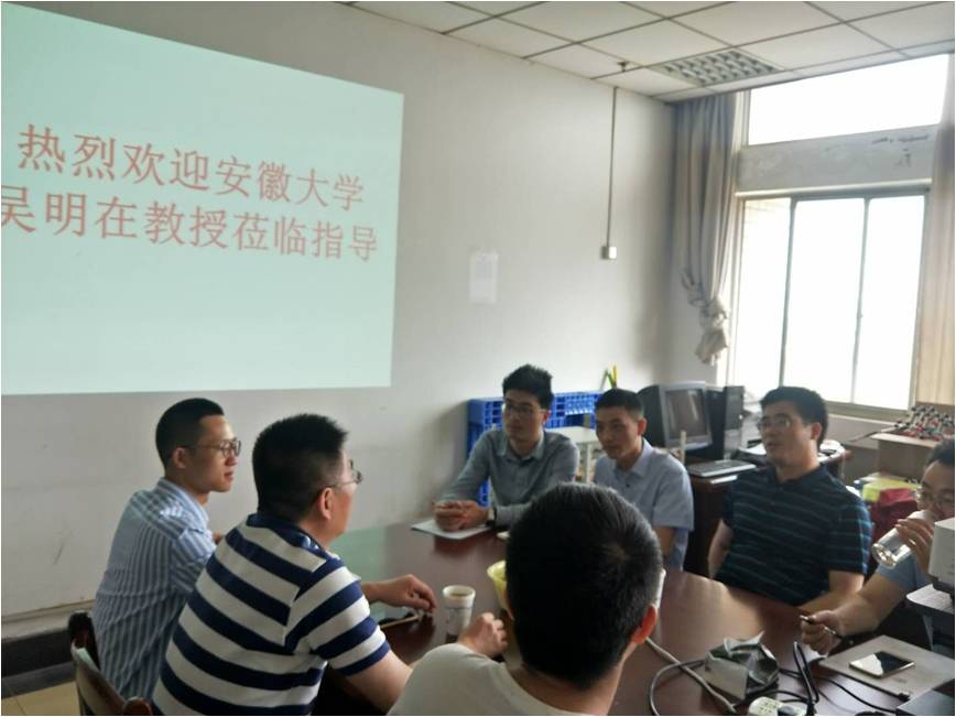 2019年5月28-29日,在体育彩票 本部主楼609室,何孝军课题组邀请了安徽大学吴明在教授来课题组进行学术交流指导。