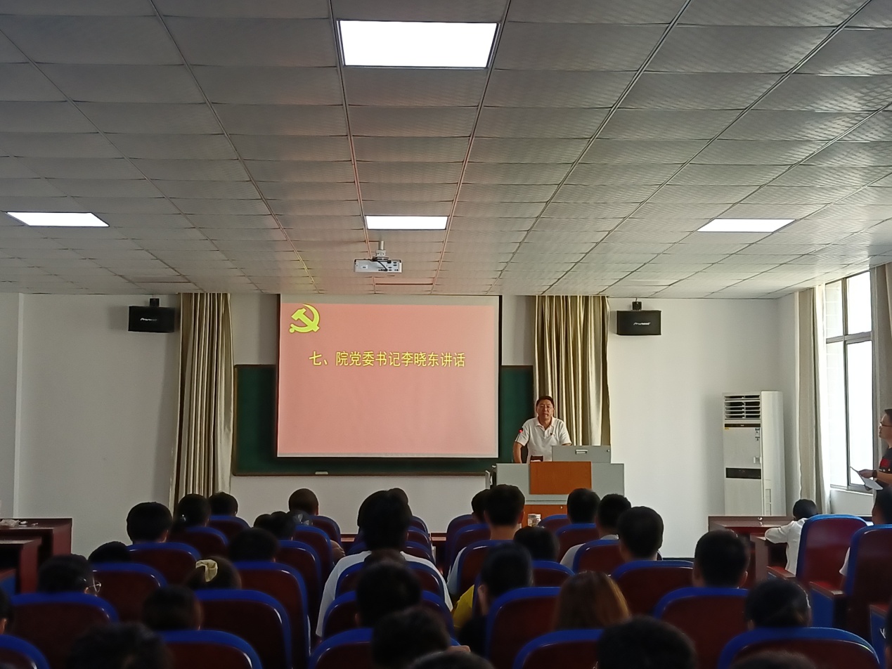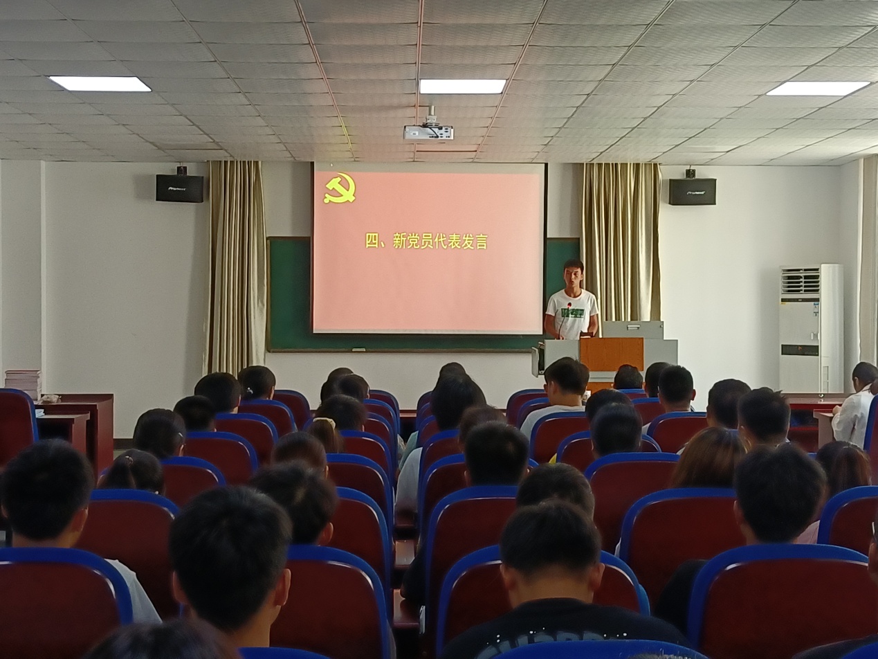 李晓东代表学院党委讲话。首先向新入党的同学表示祝贺,同时也对全体党员提出三点要求:一是希望大家始坚定信念,不忘初心,时刻牢记使命。在今后的学习工作和生活中,以党员的标准严格要求自己,时时处处起模范带头作用;二是希望大家遵守党的纪律,自觉接受党组织的教育、管理、监督,不断强化法治观念和党的组织纪律,不断提升自己的政治素质和能力素质;三是希望大家不断加强学习,拼搏奉献,攻坚克难,努力创造无愧于党、无愧于人民、无愧于时代的业绩,为党旗增辉。