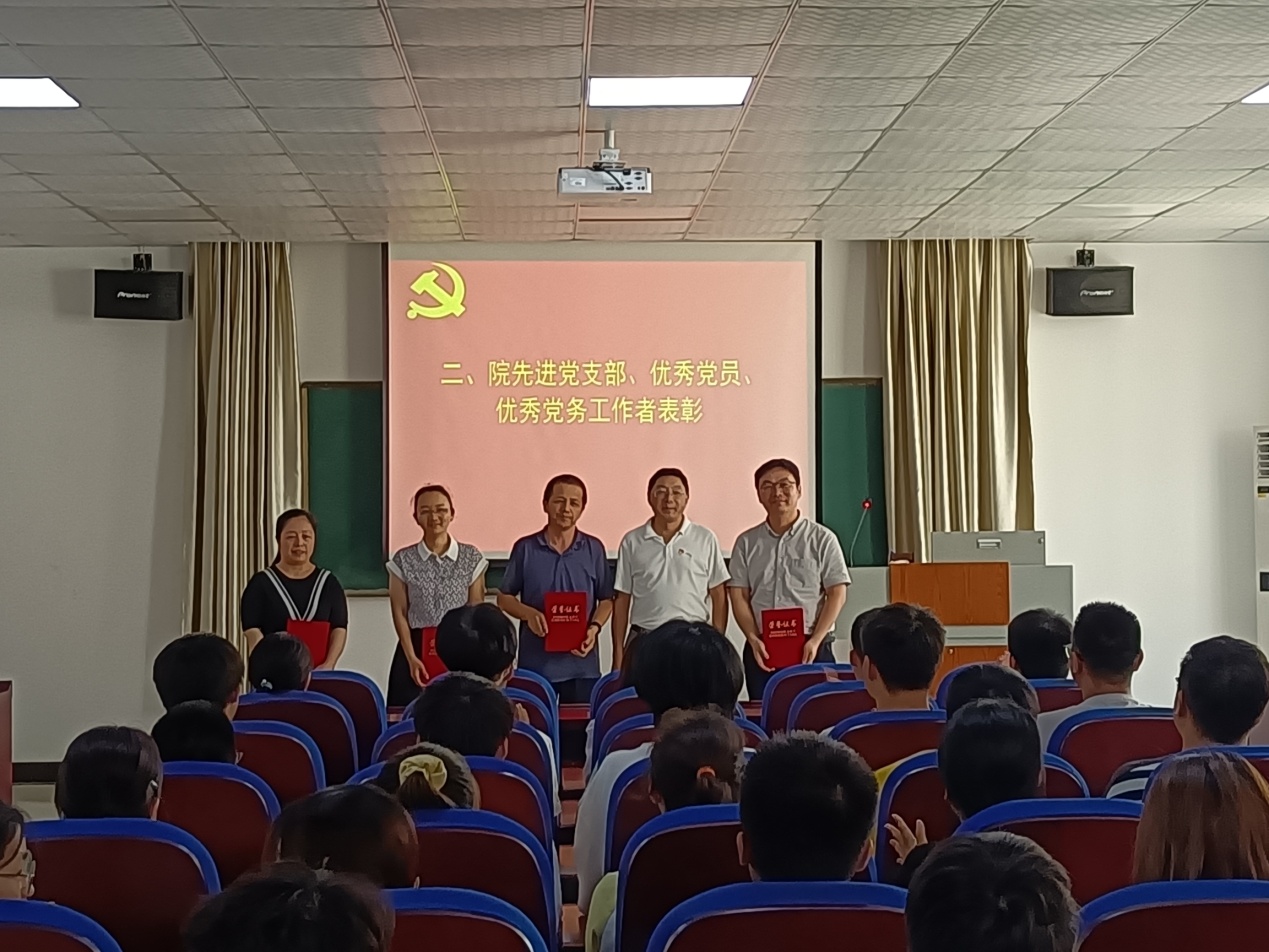 会议在奏唱《中华人民共和国国歌》中拉开帷幕。李晓东宣读了《关于表彰先进党支部、优秀共产党员、优秀党务工作者的通报》,并为获得表彰的院级先进党支部、院优秀共产党员、院优秀党务工作者颁奖。