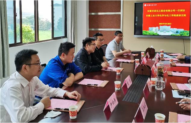 5月26日,安徽华星化工公司副总经理刘德军、总工程师熊金华率队来体育彩票 开展产学研交流。院党委书记李晓东,副院长冀秀芝、夏友谊出席交流会,应用化学系、化学生物学与制药工程系和高分子材料系相关教师参加会议。