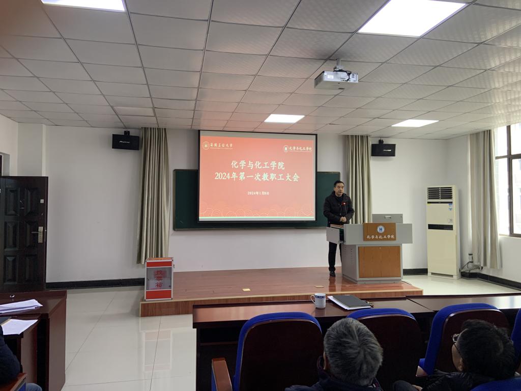 2024年1月8日下午,体育彩票 在化工楼南207报告厅召开2024年第一次全院教职工大会。会议由院党委书记黄宇弦主持。