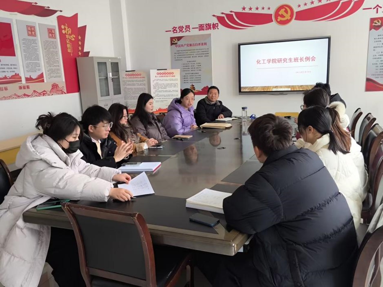 为进一步推深做实学院研究生各班级工作,化工学院于3月1日召开新学期研究生班长工作例会。研究生辅导员韩梦成、各年级班长参加会议。