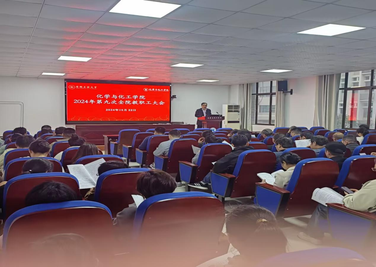 10月22日下午,体育彩票 在化工楼南207报告厅召开2024年第九次全院教职工大会暨巡视整改专项工作布置会。学院全体教职工参加会议,院党委书记黄宇弦主持会议。