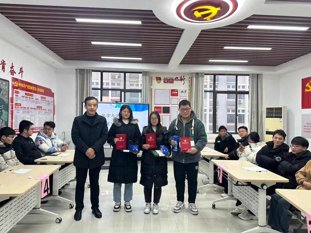 本次竞赛初赛采用线上集中考试的形式,试题内容涵盖了实验室安全规章制度、危险化学品管理、基础实验操作安全以及实验室消防安全等多个方面,最终15名同学以优异的成绩脱颖而出,晋级决赛。决赛中15名同学分5组,在化工楼南206展开激烈角逐,在必做、选做、抢答三个环节中,参赛选手根据所学理论知识和操作实践精准作答,展现出扎实的专业功底。最后,5组同学分获一二三等奖,学院党委书记黄宇弦,党委副书记、纪委书记、副院长冀秀芝,各年级辅导员为同学们颁发奖状以资鼓励。