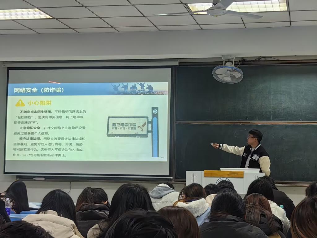为进一步增强学生安全意识,提升校园安全防范能力,3月17日晚,体育彩票 面向2023级全体学生组织开展校园安全主题教育。2023级辅导员孔志强围绕防电诈、宿舍消防、交通安全、饮食安全等重点领域,结合真实案例与校园实际,进行了全面细致的安全知识讲解。