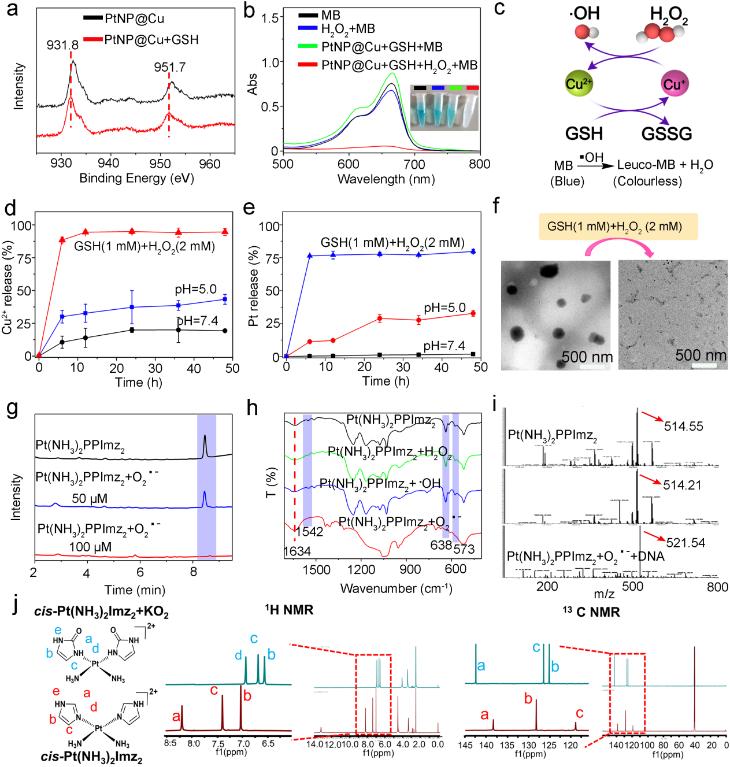 (双锁保护的纳米药物PtNP@Cu在体外级联催化氧化释放药物的表征)