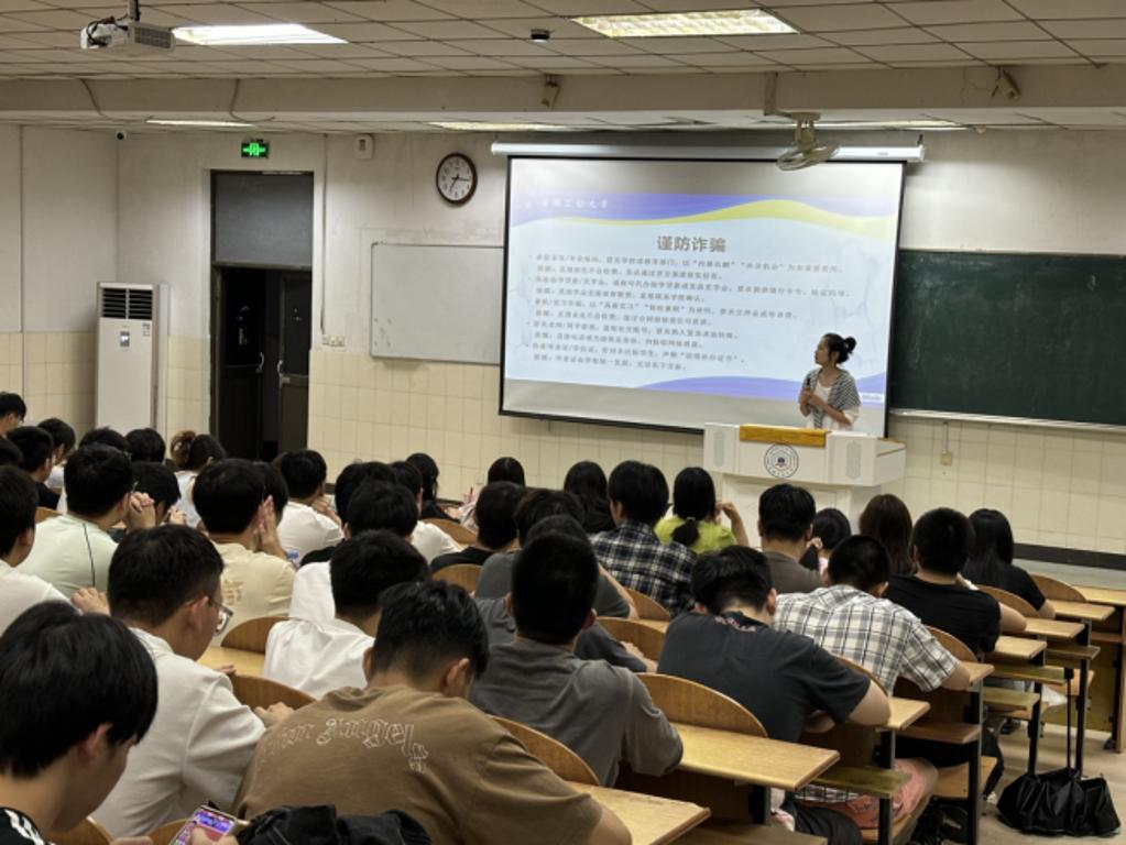 随后,辅导员围绕“安全离校、文明离校”主题展开重点工作部署,结合毕业班实际情况,重点剖析了虚假录取、补录骗局、兼职实习诈骗等套路,提醒同学们务必警惕陌生来电、不明链接,保护个人信息与财产安全。会议还就档案邮寄地址核对、党团组织关系转接、学费清缴等离校手续办理流程作了详细说明,要求毕业生按时完成相关事宜,确保顺利毕业。