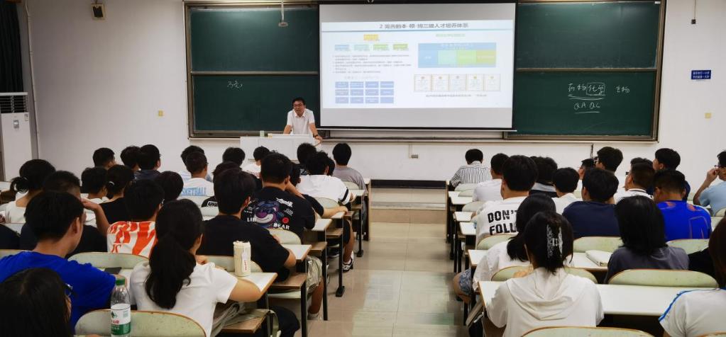 为帮助新生深入了解学院发展历程、专业设置及未来方向,增强对专业的认同感与归属感,9月8日晚,化工学院于佳山校区教三开展了2025级新生专业见面会,学院副院长(主持工作)韩新亚、党委副书记、纪委书记、副院长冀秀芝、副院长夏友谊、各专业系室主任、教师代表、辅导员及全体2025级新生参加活动