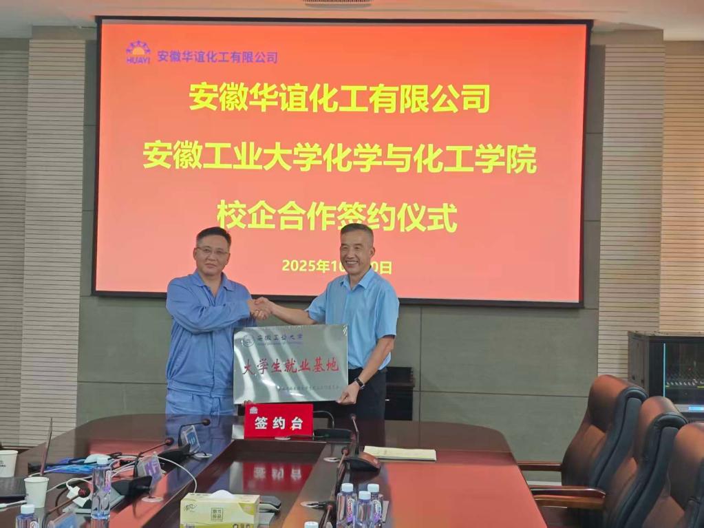 在与会代表的共同见证下,双方签署了战略合作协议。黄宇弦代表学校向安徽华谊化工有限公司授予“体育彩票 就业基地”牌匾。此举将为学生提供更优质的实习就业平台,也为企业构建了稳定的人才引进渠道。