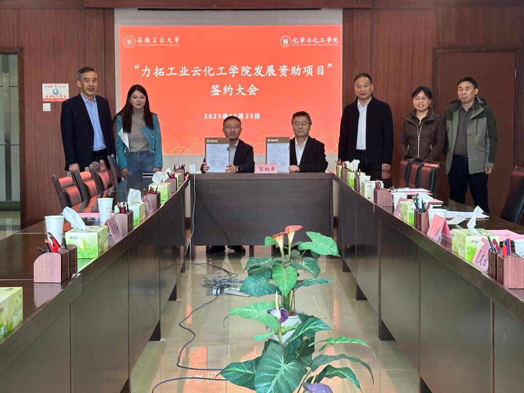 会上,王辉介绍了公司概况、核心技术优势及特色体育彩票。他表示,企业高度重视产学研协同发展,期待以此次合作为契机,进一步深化与学院的全方位合作,实现企业、学校、师生多方共赢的良好局面。化工学院党委书记黄宇弦介绍了双方合作项目的核心内容,高度赞赏企业主动担当的社会责任感和情怀,对力拓云智能科技(南京)有限公司的无私捐赠和善举致表示感谢。随后,校企双方代表共同签署“力拓工业云化工学院发展资助项目”捐赠协议,并举行捐赠证书及纪念杯颁发仪式。经友好磋商,双方在人才联合培养、技术研发合作、科研成果转化等关键领域达成共识,正式签订校企合作框架协议书。
