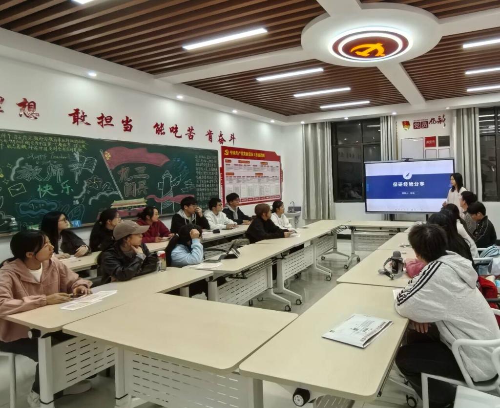 互动答疑环节中,同学们踊跃提问,围绕如何平衡科研与课程学习、预推免与夏令营的区别等具体问题与学姐深入交流。学姐们结合自身经验逐一耐心解答,同时留下联系方式,方便后续为同学们提供进一步指导。现场氛围热烈融洽,同学们纷纷表示收获颇丰,对保研有了更清晰的认识。
