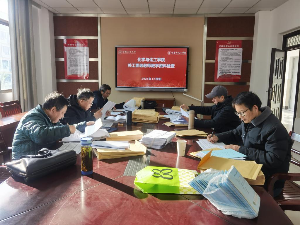 为持续提升教学质量,夯实育人过程,保障人才培养关键环节的规范性,12月8日,化工学院顺利完成了2024-2025学年第二学期教学资料及2025届毕业设计(论文)专项检查。本次检查工作特邀请学院关工委多位老教授、老专家参与到教学资料的检查与指导工作中,将“关心下一代”的使命实实在在地融入日常教学督导中,发挥“五老”在育人工作中的作用。