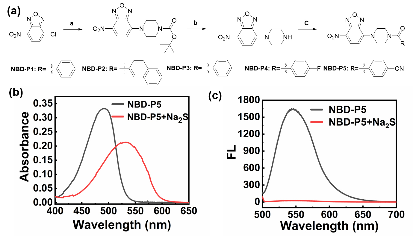 针对当前H2S清除剂检测范围较小的问题,本研究以高荧光量子产率、生物相容性较好的硝基苯并噁二唑荧光团、哌嗪连接基团为原料,构建了一系列H2S清除剂(NBD-P1−NBD-P5)。NPD-P5对H2S具有优良的选择性和消除能力,与以往报道的H2S清除剂相比,NBD-P5具有快速的响应时间(3 min)、更宽的线性响应范围(200-600 μM),适用于癌细胞中高浓度的H2S的快速分析和浓度下调。此外,NBD-P5能够显著清除活细胞和斑马鱼体内的内源性H2S,证实NBD-P5在复杂的生物系统中也能下调H2S浓度。这些数据表明NBD-P5具备发展成一种有效的生物体内H2S清除剂的潜力,有望应用于H2S相关疾病的分析和诊疗研究。