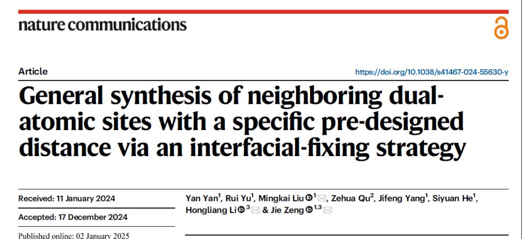 General synthesis of neighboring metal-Nx moieties with a specific pre-designed distance via an interfacial-fixing strategy. Nat. Commun. 2025, 16 (1), 334.