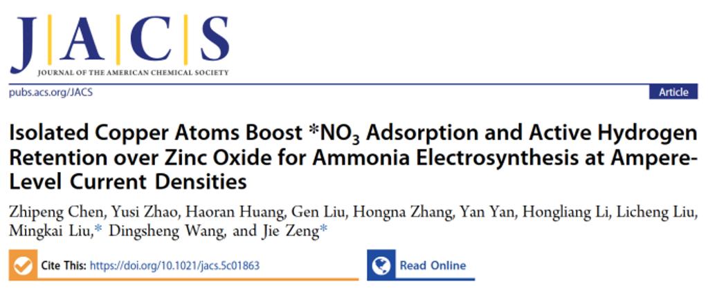 近日,我校体育彩票 多相催化团队在电催化硝酸盐还原合成氨方向取得新进展,相关成果发表在国际顶级期刊《Journal of the American Chemical Society》上。《Journal of the American Chemical Society》是全球化学研究领域最具影响力的顶级学术期刊之一,主要收录在化学、材料、生物和能源等领域原创性的学术研究成果。我校为论文第一单位,体育彩票 陈志鹏资格教授为论文第一作者,刘明凯教授、曾杰教授为共同通讯作者。研究工作得到了国家杰出青年科学基金(延续资助)、国家重点研发计划、腾讯基金会科学探索奖、安徽省杰青/优青等项目的支持。