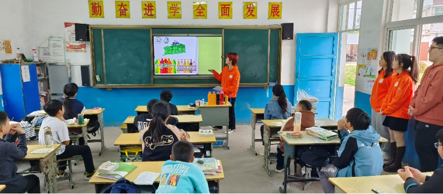 在驻红光村第一书记胡卫东的陪同下,团队队员及师生志愿者在红光小学开展了主题为“关注食品安全,守护健康童年”的食品安全科普宣传。队员们通过PPT介绍、视频播放,把许多食品中常见人工色素的类别、来源及其健康危害等知识传递给学生,让小朋友对食物颜色有了更深刻的了解,同时也加强他们的食品安全意识。活动现场,志愿者们还将食安小卫士团队自主研发的人工食品色素试纸条进行操作演示,与小朋友共同完成了包括颜色调配、着色食品脱色和饮料中色素的比色检验等多个项目,让小朋友清楚地认识到加工食品中的‘五颜六色’是如何形成的。其中,在经历过“可乐脱色”实验后,小朋友们纷纷表示“以后要少喝饮料”。活动结束后,王双寿勉励小朋友们要好好学习,学习更多的科学知识,长大成为对国家社会有用的人。
