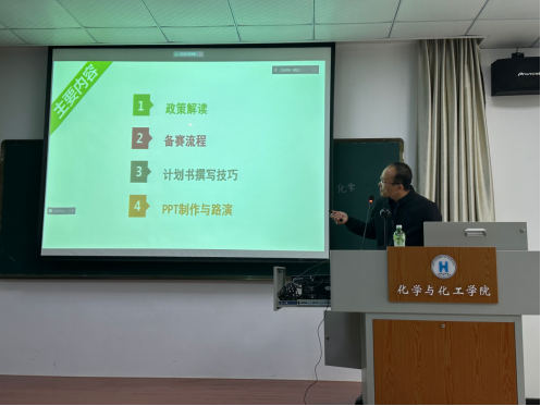 3月27日下午,化工学院在秀山校区化工楼南207举办中国国际大学生创新大赛宣讲动员大会。本次宣讲邀请到化生系青年教师王双寿、学院竞赛学生代表曹振主讲,各年级学生代表200余人参加了本次活动,全体23级新生线上参会。