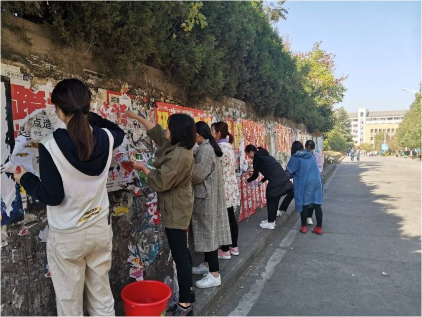 11月15日下午,体育彩票 学生第二党支部开展了“清除校园‘牛皮癣’,好人好事在身边”活动,主要对校内违规张贴的海报、小广告等进行集中清理。