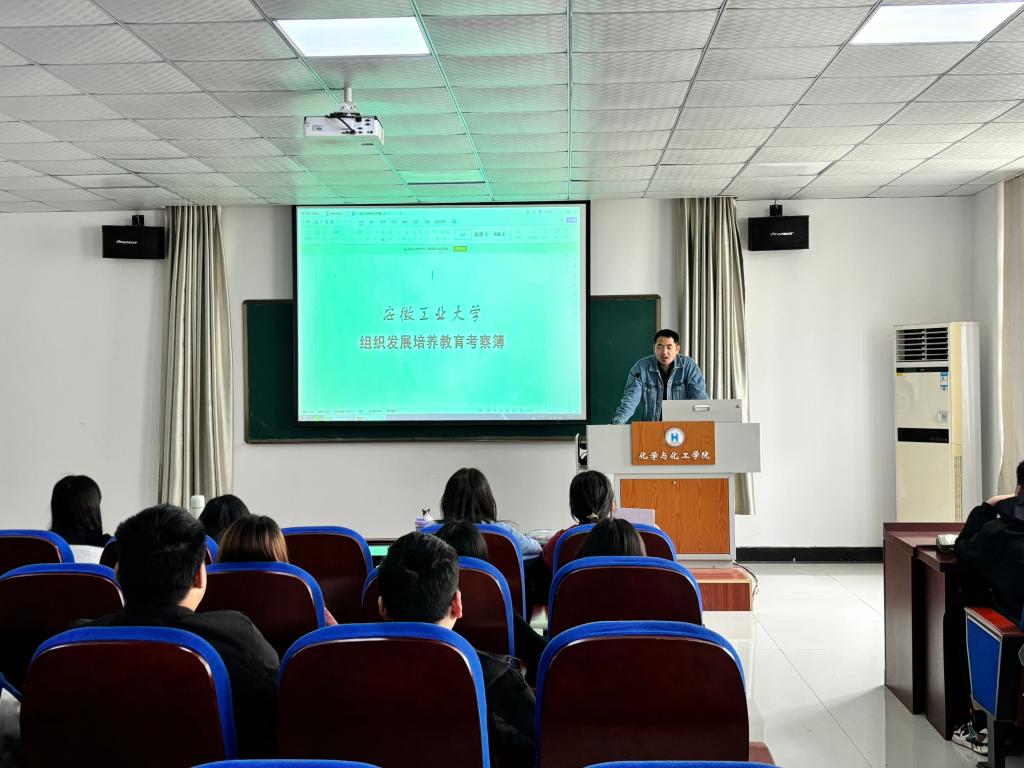 为做好学院党员发展与后续教育培训工作,4月10日中午,化工学院在化工楼南207召开了2024年上半年发展对象党校培训动员会,各学生党支部书记、上半年全体发展对象参加了本次会议。