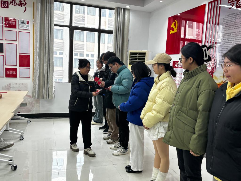 2024年12月24日,体育彩票 2024年下半年新发展党员入党宣誓仪式在秀山化工楼南206党员活动室举行。学院党委书记黄宇弦、学院党委副书记、纪委书记、副院长冀秀芝、各学生党支部书记、党员代表及2024年下半年全体新发展党员参加了宣誓仪式,仪式由院分党校班主任朱圣兰主持。