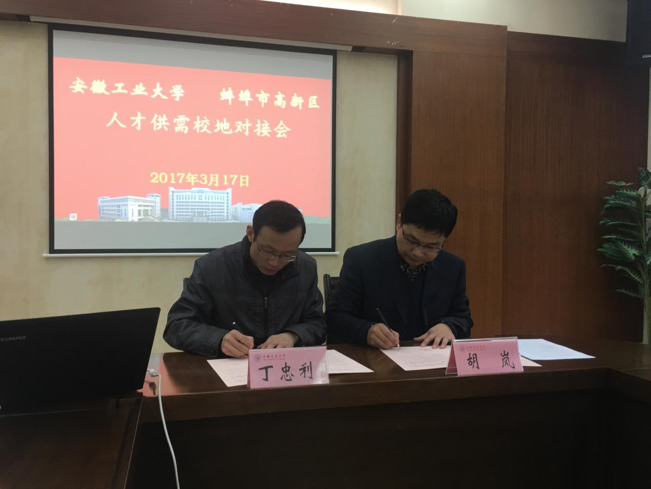 会上,姚敏介绍了我校发展概况,教育教学特色以及学术科研优势,并对近几年来我校毕业生就业整体情况及用人单位反馈做了说明。胡岚介绍了蚌埠市高新区产业分布、专业需求、人才引进等相关情况,希望双方能搭建校地合作平台,吸引更多优秀毕业生进入相关企业工作,增强企业软实力,提升企业核心竞争力。会后,双方签订了合作协议。